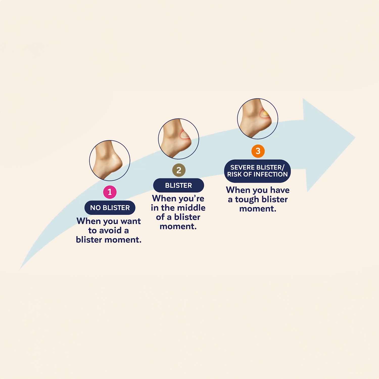 Made from hydrocolloid material, Blister Prevention delivers instant relief from pressure and friction while protecting the skin.